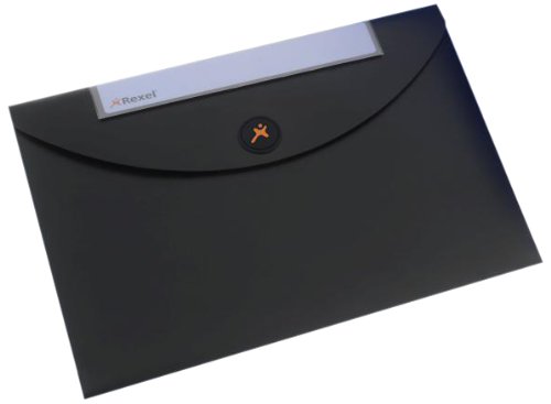 Rexel 2102477 Dokumentenhülle Optima Spezieller Klappdeckel für einfachen Zugriff, 5 Stück, schwarz Feature